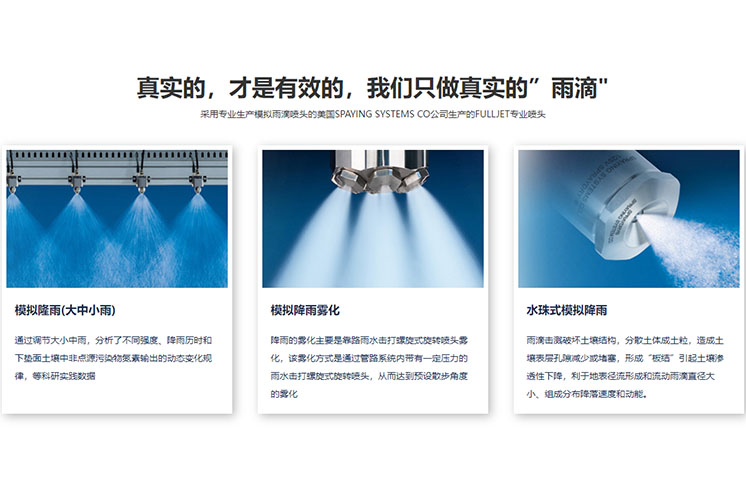 采用先進的振蕩原理,人工模擬產(chǎn)生水蝕動力的自然降雨,人工模擬降雨實驗儀器和設備。由于采用帶壓垂直噴霧模擬降雨,雨滴能量大,抗風能力強,接近自然降雨能量。